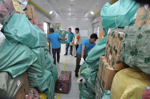 7月10日10:05,裝載著600余袋郵件的烏魯木齊至北京Z180次郵運(yùn)列車到達(dá)北京西站。因更新車底原因停運(yùn)近四年的烏魯木齊至北京干線火車郵路恢復(fù)運(yùn)行。該郵運(yùn)列車采用25T型車底,時速達(dá)到每小時160公里,全程運(yùn)行38小時。該火車郵路的開通,將華北、東北地區(qū)與新疆之間的郵件運(yùn)輸時限縮短1~2天,郵路由烏魯木齊郵區(qū)中心局派押。集團(tuán)公司寄遞事業(yè)部相關(guān)領(lǐng)導(dǎo)在西站站臺上迎接執(zhí)行本次郵件押運(yùn)任務(wù)的押運(yùn)員。