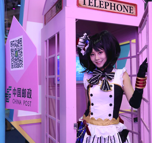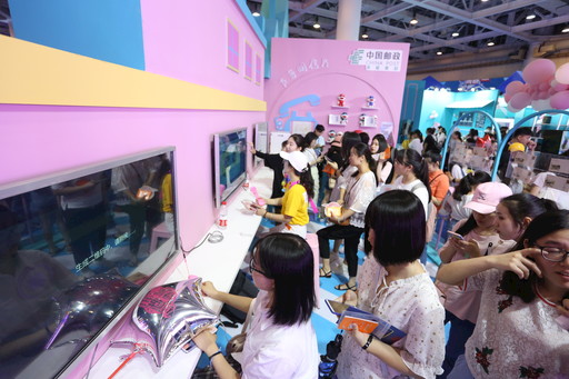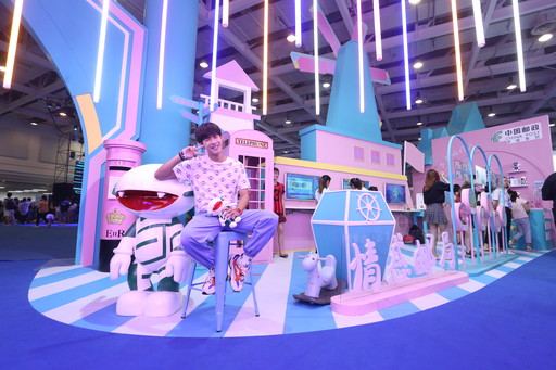 以淺藍、粉紅為主色調的郵政展區(qū)撥動了無數少女的心,cosplay模特也前來體驗。