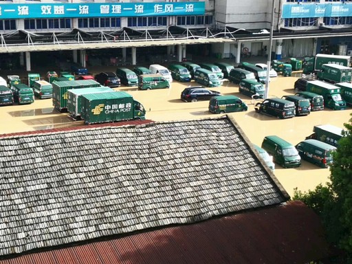 浙江臨海:臺風過后,臨海市郵政分公司生產(chǎn)場地被淹。郭定華 攝