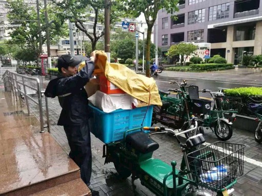 上海:臺風天氣,上海市1.1萬名“郵政小哥”一如既往堅守投遞一線,不負客戶所托,確保百姓用郵。李璐瑤  攝