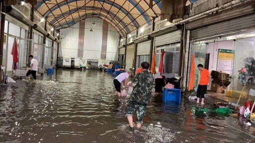 山東濟南:濟南市郵政寄遞事業(yè)部歷城區(qū)工業(yè)北路營業(yè)部受災(zāi)嚴重,員工及時轉(zhuǎn)移郵件及物資。李小樂  攝
