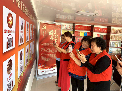 “打開微信掃一掃。”來(lái)自紅馬甲老干部志愿服務(wù)隊(duì)的王女士是有聲圖書室的第一位讀者。她對(duì)著圖書墻上的二維碼,口中念念有詞:“黨員的初心和使命,掃好了,然后再點(diǎn)其中的一本書,就可以聽了?!卑凑諌ι系牟僮魈崾?,王女士很快就學(xué)會(huì)了整個(gè)掃閱流程。她很開心地說(shuō):“我今年76歲了,年紀(jì)大了,有點(diǎn)兒老花眼,書上的字看不清,今天聽說(shuō)社區(qū)開辦了有聲圖書館,就特地來(lái)看看。我們老年人就需要這樣的聽書方式。剛才我還聽說(shuō)用微信掃一掃,還可以帶回家聽呢,多方便??!”