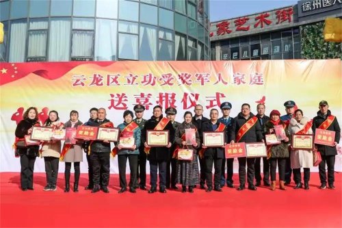 現(xiàn)場(chǎng)為立功軍人豎起大幅海報(bào)