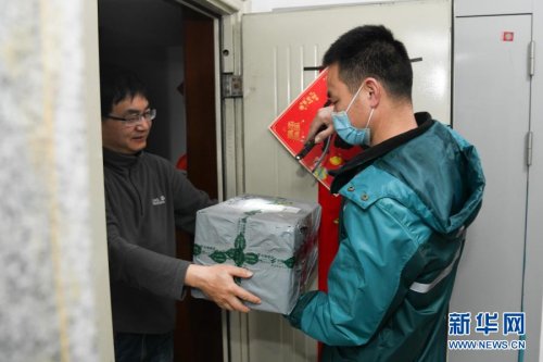2月11日,中國郵政攬投員劉元元在安徽省合肥市青陽路社區(qū)一處居民小區(qū)內(nèi)派送快遞。當(dāng)日是除夕,不少行業(yè)的工作人員依然堅(jiān)守崗位,在工作中迎接春節(jié)的到來。