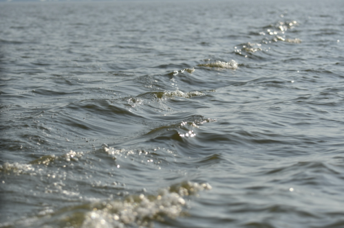 行船在洪湖水上。翻涌的浪花仿佛在向人講述當年的景象。