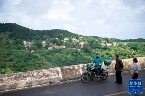 在山西省壺關縣大峽谷鎮(zhèn)壺陵水村,趙月芳在送件的路上(7月13日攝)。新華社記者 詹彥 攝