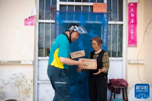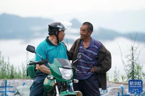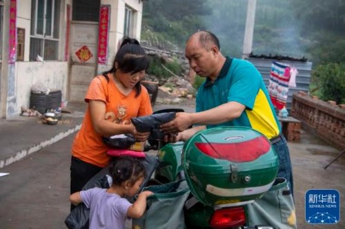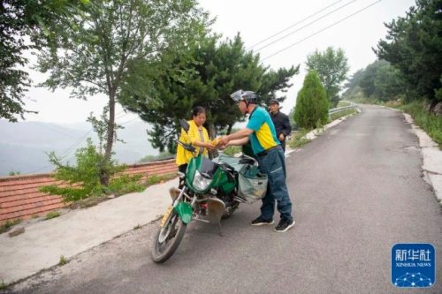 在山西省壺關縣大峽谷鎮(zhèn)師家背村,趙月芳為村民送件(7月14日攝)。新華社記者 詹彥 攝
