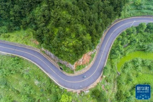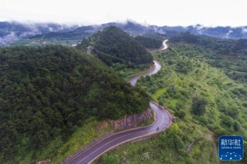 在山西省壺關縣大峽谷鎮(zhèn),趙月芳騎行在送件的路上(7月13日攝,無人機照片)。新華社記者 楊晨光 攝