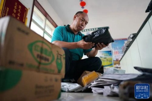 在位于山西省壺關縣大峽谷鎮(zhèn)鵝屋村的郵政所,趙月芳將整理好的包裹準備裝車(7月14日攝)。新華社記者 楊晨光 攝