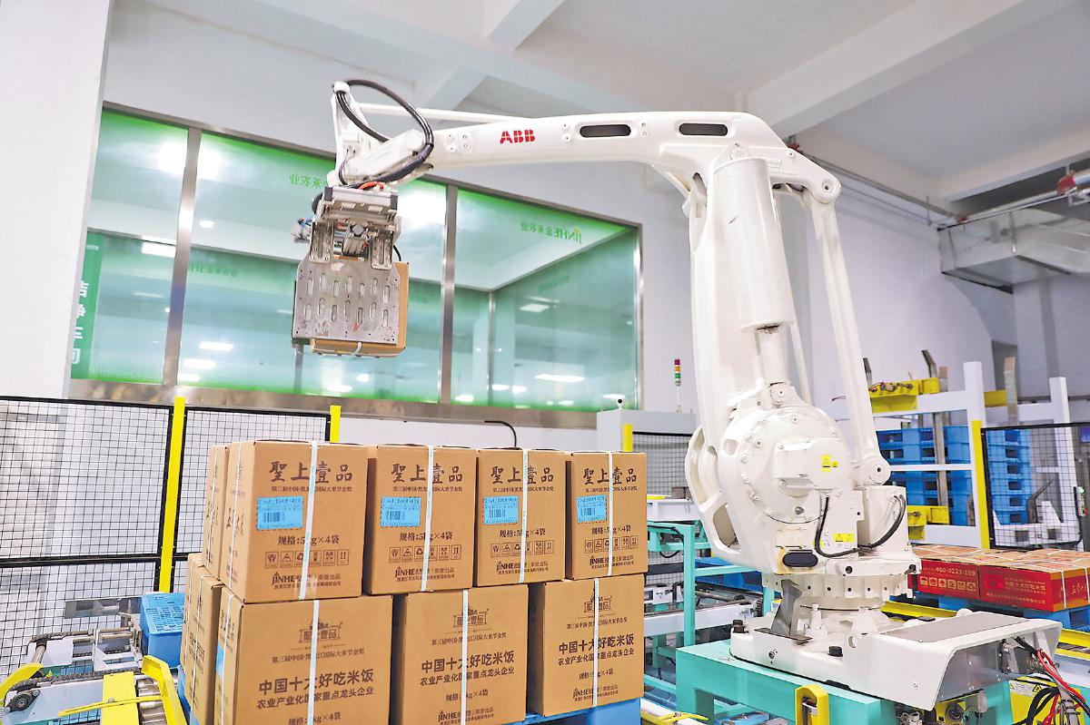聽說郵儲(chǔ)銀行的人前來調(diào)研,本來臨時(shí)要出差的五常市金禾米業(yè)有限責(zé)任公司董事長李云輝將出行時(shí)間硬是推遲1小時(shí),只為能見上一面。當(dāng)看到金禾米業(yè)生產(chǎn)線上兩臺(tái)“ABB”數(shù)控機(jī)器臂正在精準(zhǔn)分揀包裝好的盒裝高端稻米產(chǎn)品時(shí),記者不禁感嘆:“普通的大米居然能做得如此高科技!”